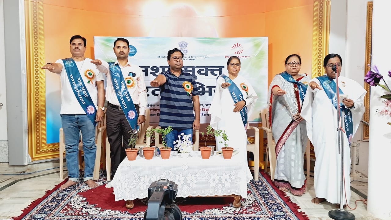 नशा मुक्ति की प्रतिज्ञा करते हुए अतिथि