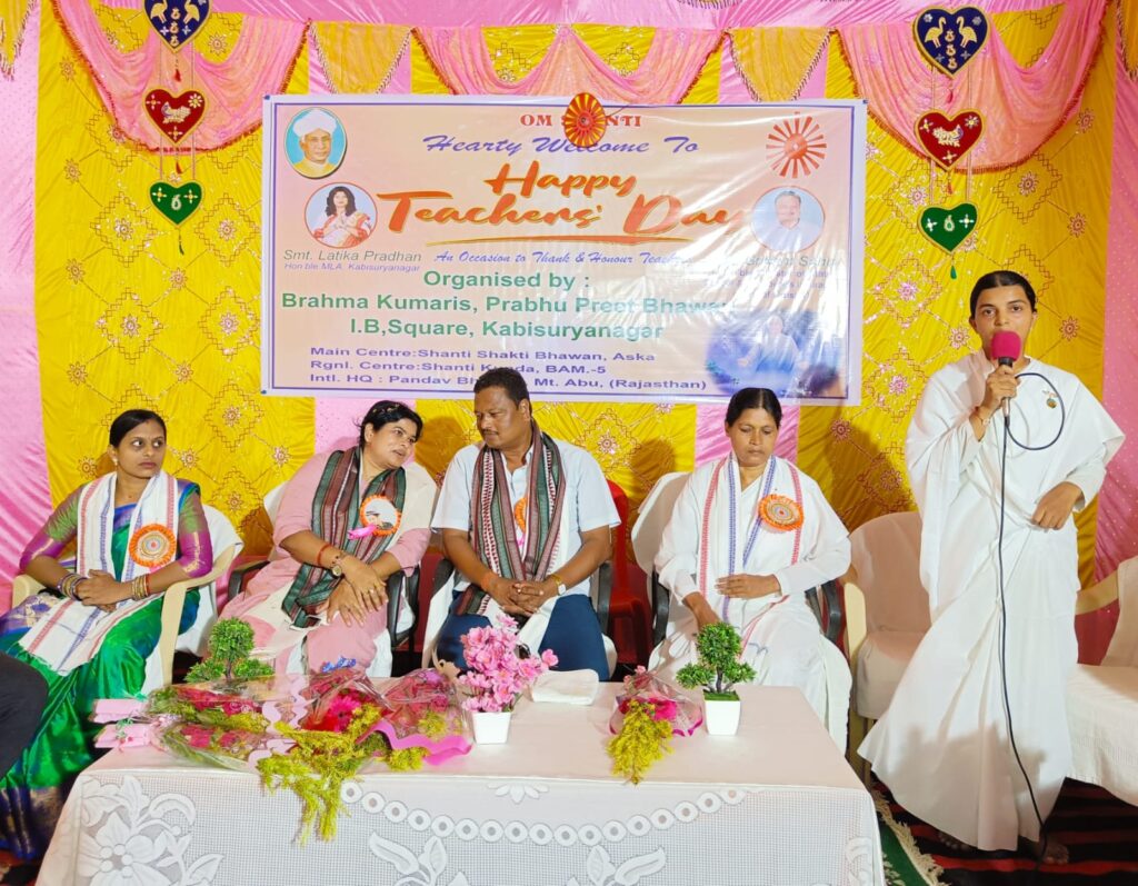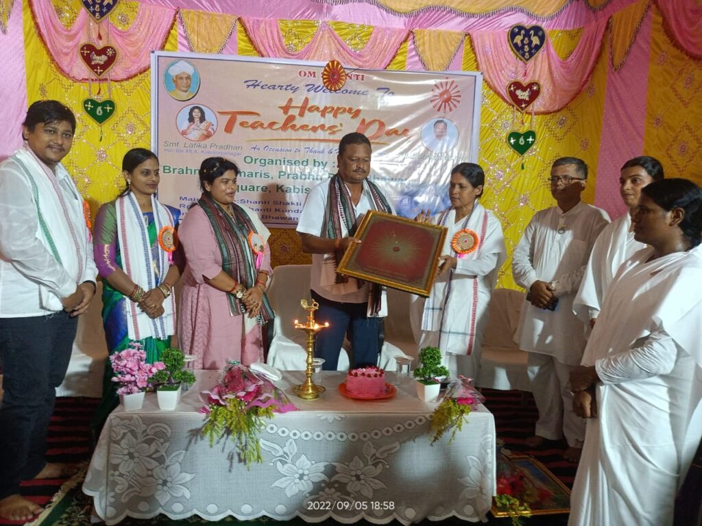 Kabisuryanagar ( Odisha ): Brahma Kumaris Prabhu Preet Bhawan organised a spiritual get-together on Teachers’day, coordinated by Brahma Kumari Sugyani, Centre in charge of Prabhu Preet Bhawan. More than a hundred teachers both on duty and retired from various schools and colleges were honoured by Srikant Sahu, Minister of State Labour and Employee’s insurance Government of Odisha who graced the occasion as Chief guest. Latika Pradhan , MLA, Kabisurya Nagar, S.Laxmi Sethi, Chairperson and Vikrant Kumar Sahu Vice-Chairperson of Kabisurya Nagar, NAC also joined the minister on this occasion.